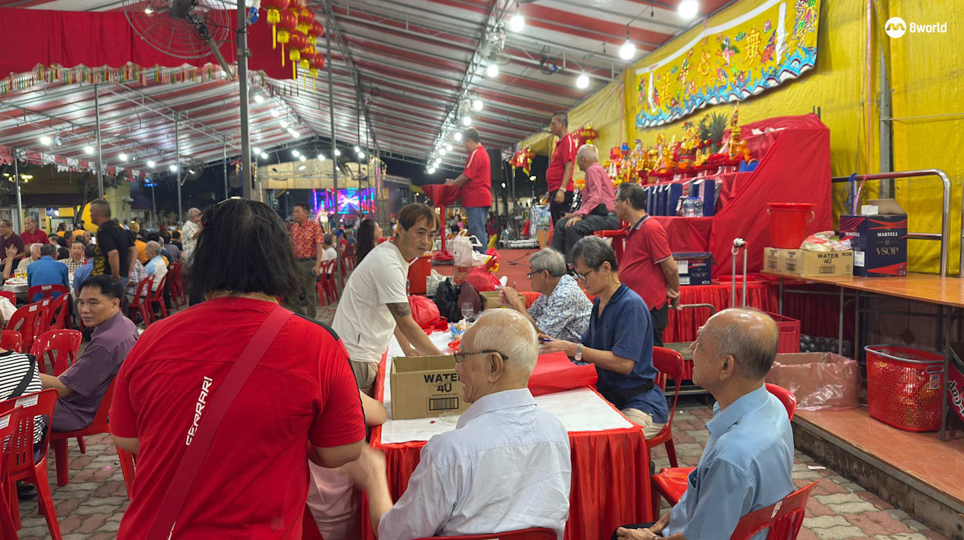 众心社举办中元会庆典,现场设有37桌宴席、喊标活动与歌台演出。(图:曾琬瑜)