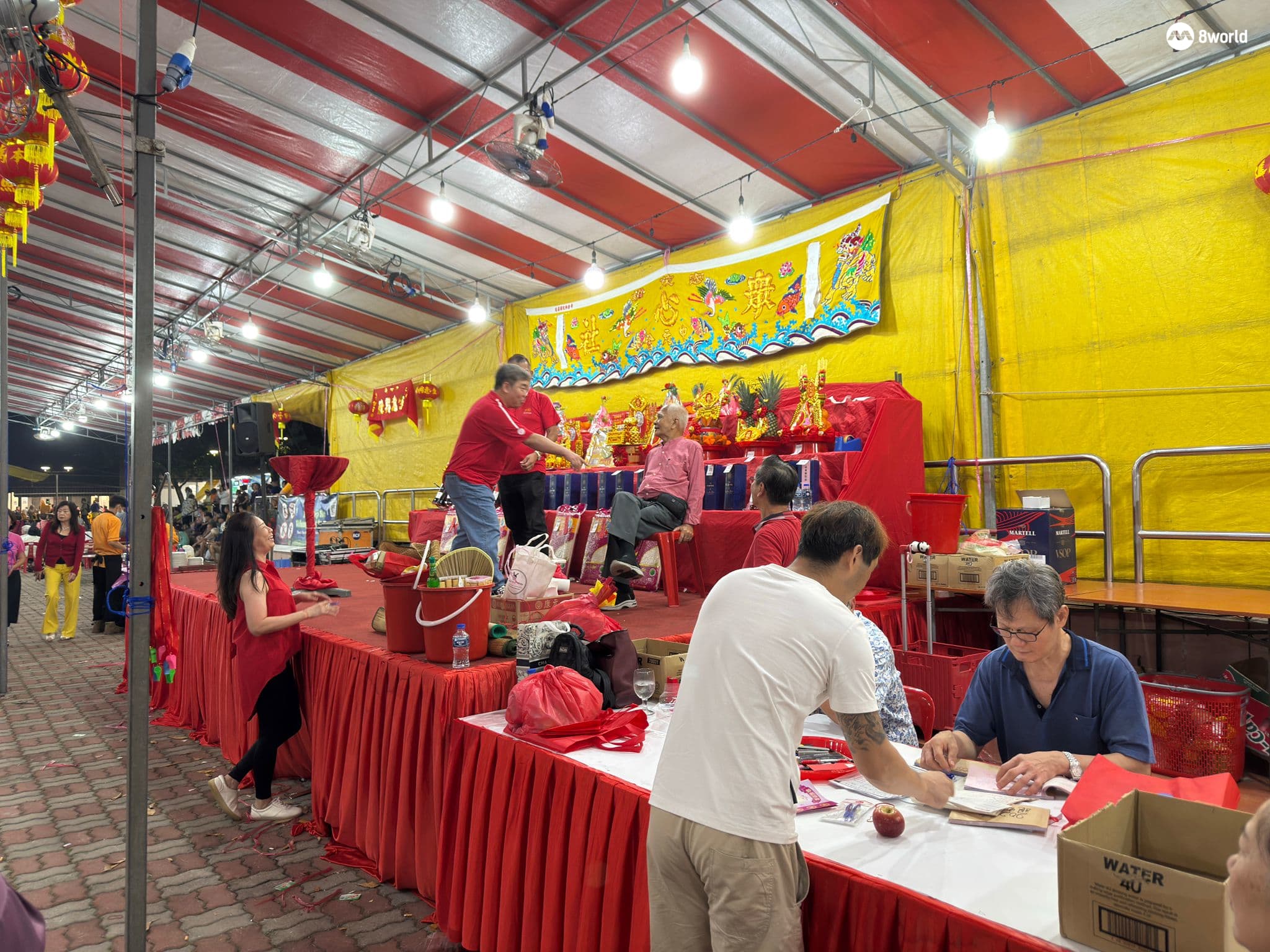 直到去年,在会员们齐心协助下,歌台得以重办,今年再接再厉再度举办中元庆典,现场设有37桌宴席、喊标活动与歌台演出,吸引大批居民踊跃参与。