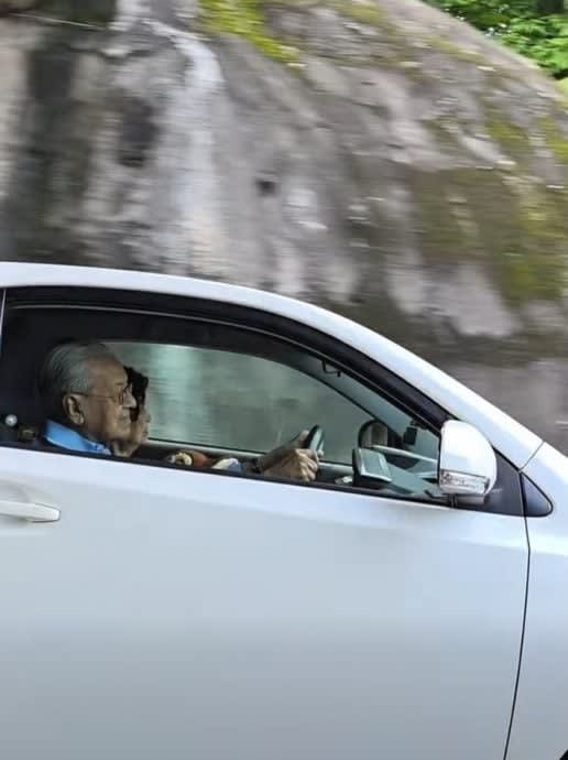 有网民惊讶于马哈迪在高龄之下仍能亲自开车外出。(图:Facebook/ Dr. Mahathir bin Mohamad)