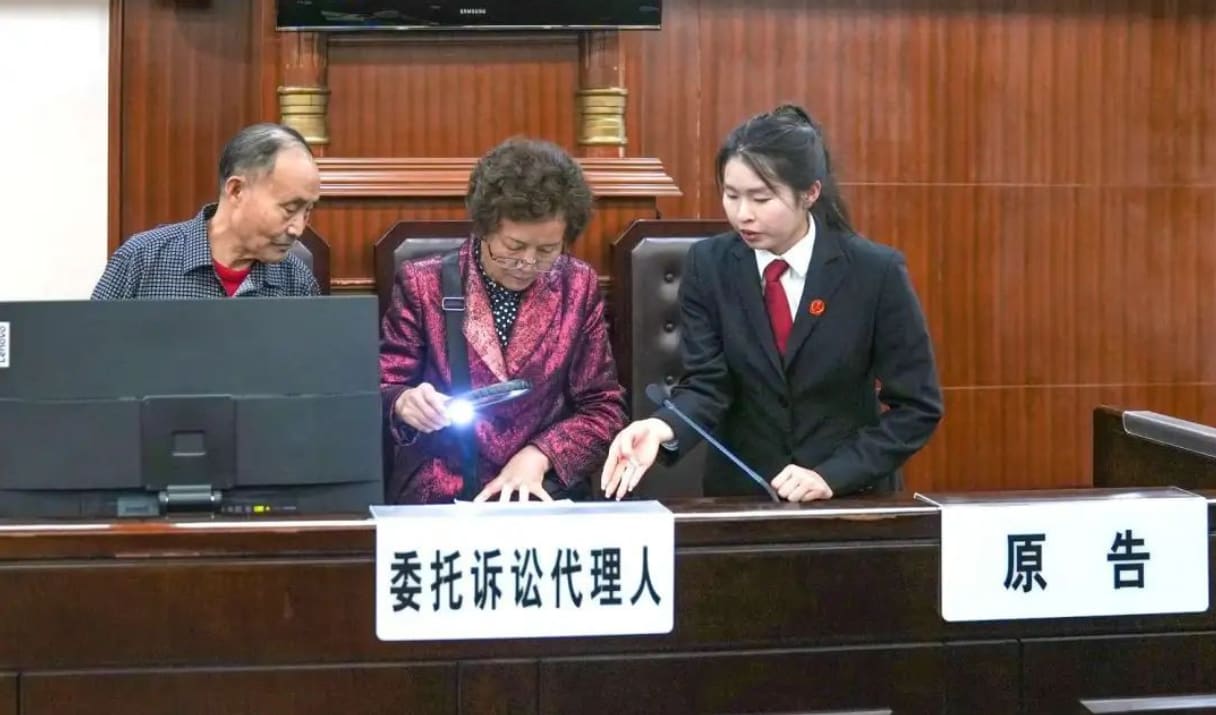 中国的适老化法庭主打一个便民,法庭内配有各种适合老年人的器材,以便不时之需。(图:网上截图)