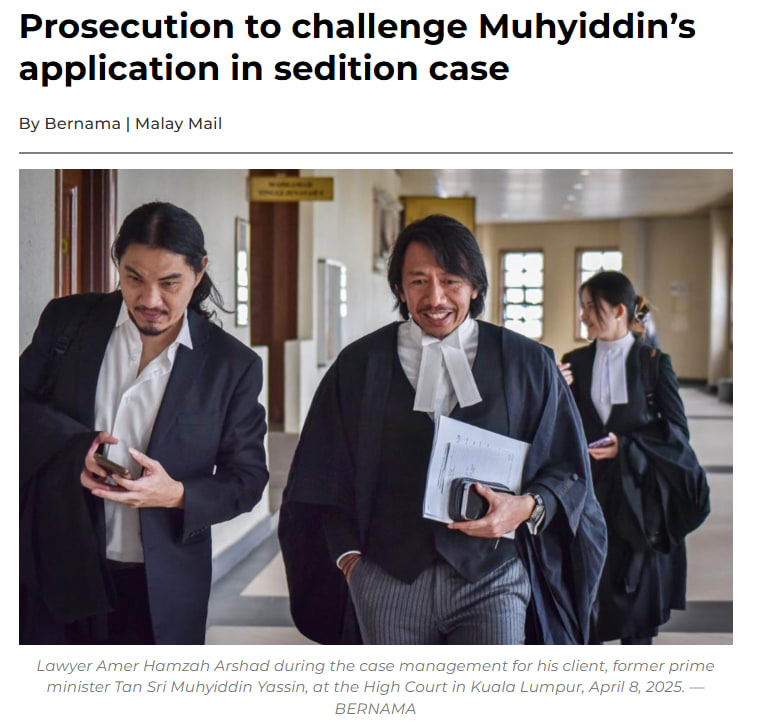 今年四月,郑清丰(左)作为代表律师为前首相幕尤丁处理涉嫌煽动言论案。(图:网络截图)
