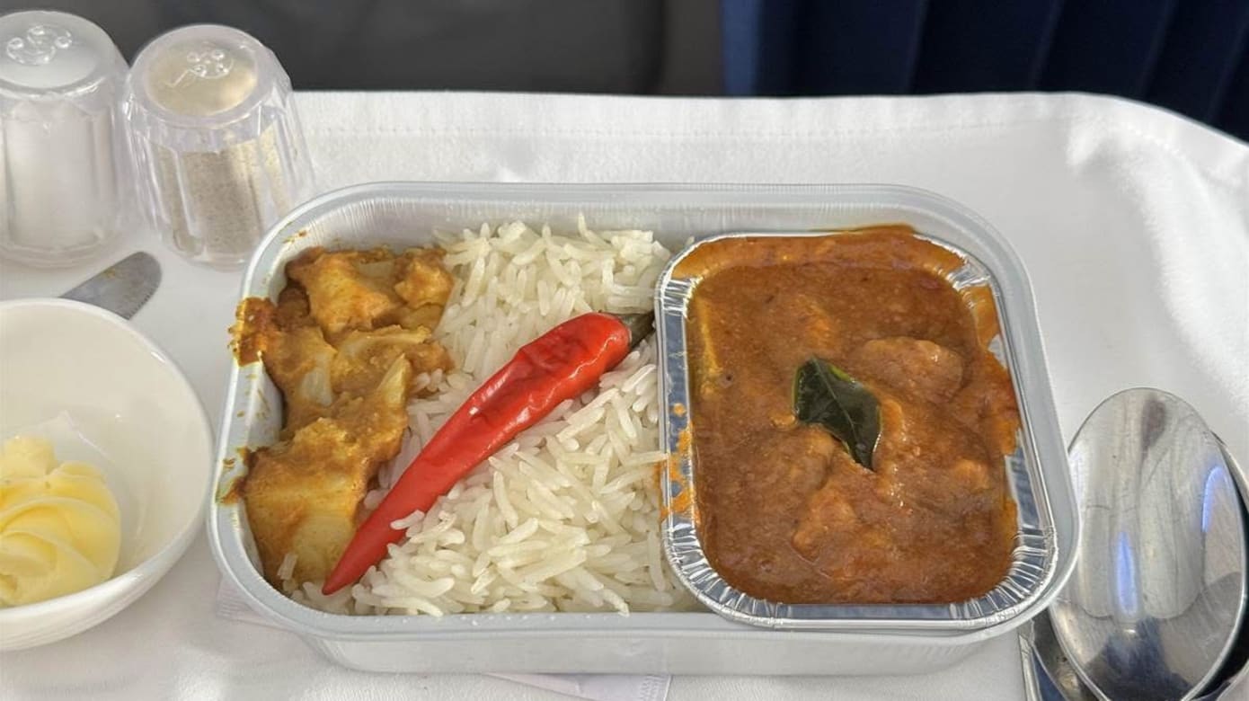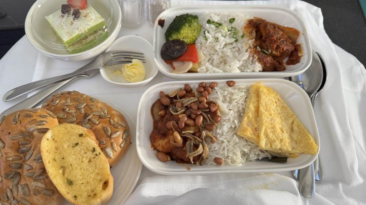 这一句话,似乎打开了乘务长的“热情开关”。接着,乘务长不仅送上娘惹亚参辣鱼,还陆续奉上参峇虾椰浆饭、鸡肉云吞面、印度餐以及荷兰酱焗蛋,并附上两个小蛋糕、一杯蜂蜜柠檬茶和半杯拉茶。