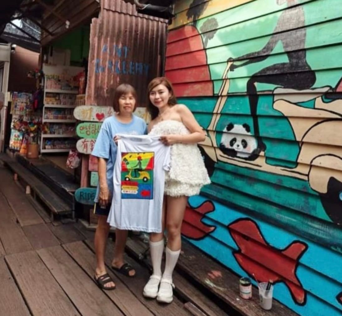 屋主周女士表示,当天她确实不知道有人要在自家墙上作画,后来得知弟弟已同意后,也没有阻止,还送了沈狮狮印有《骑威士霸女生》的纪念T恤。