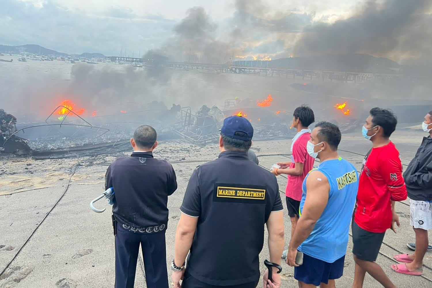 泰国普吉岛查隆码头(Chalong Pier)清晨发生火灾,约20艘加满油的快艇被烧毁。