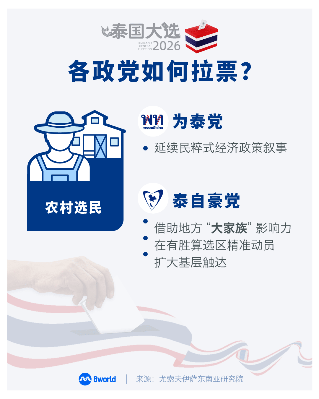 在选民行为层面,政治分析员、密歇根大学政治学博士候选人罗健文(Ken Lohatepanont)指出,这次选举的关键,可能取决于城乡选民的政治偏好是否会出现分歧。选民分裂投票(split-ticket voting)的情况相当普遍,尤其是在乡村地区——选民可能在选区票中投给在地方表现良好的候选人,但在政党名单票中选择自己偏好的全国政党。