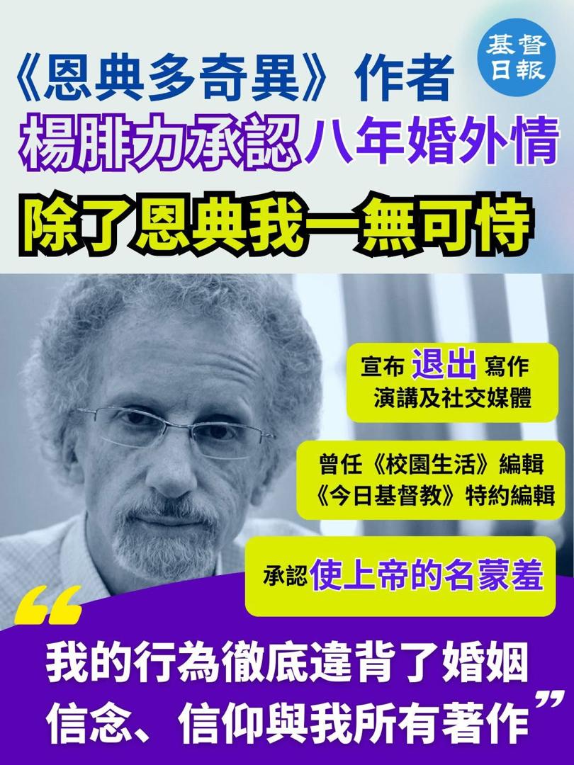 杨腓力自揭出轨8年,在中英文信仰圈抛下震撼弹。(图:网络截图)
