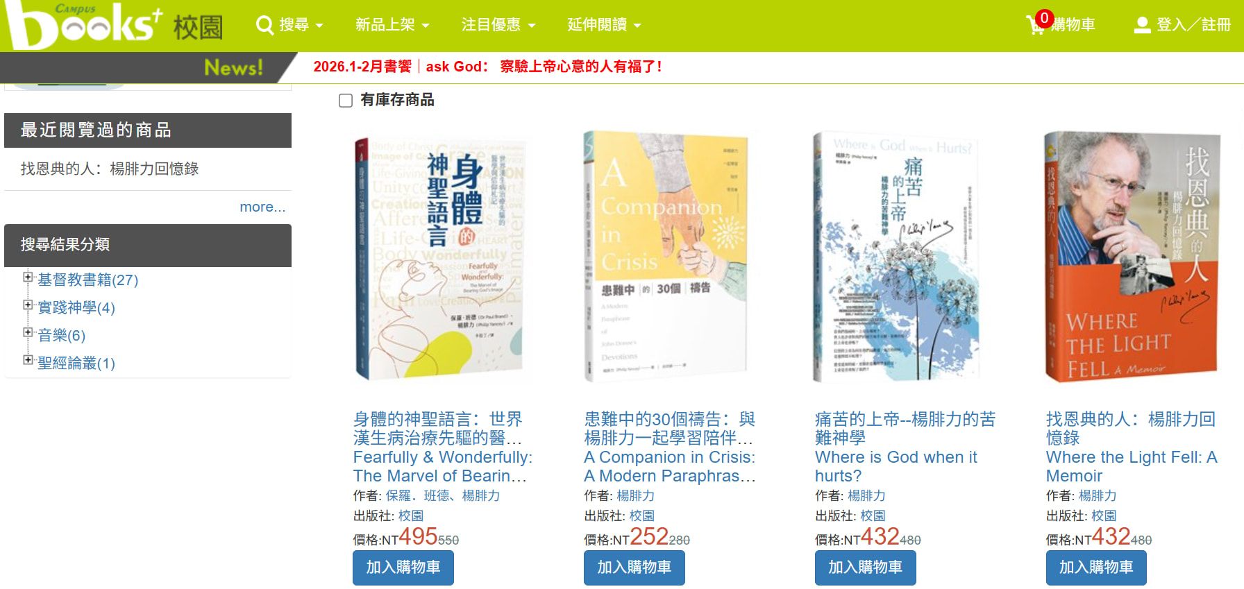 台湾出版社“校园书房”网站上仍有27本杨腓力的著作,并未因其婚外情而遭下架。(图:网站截图)