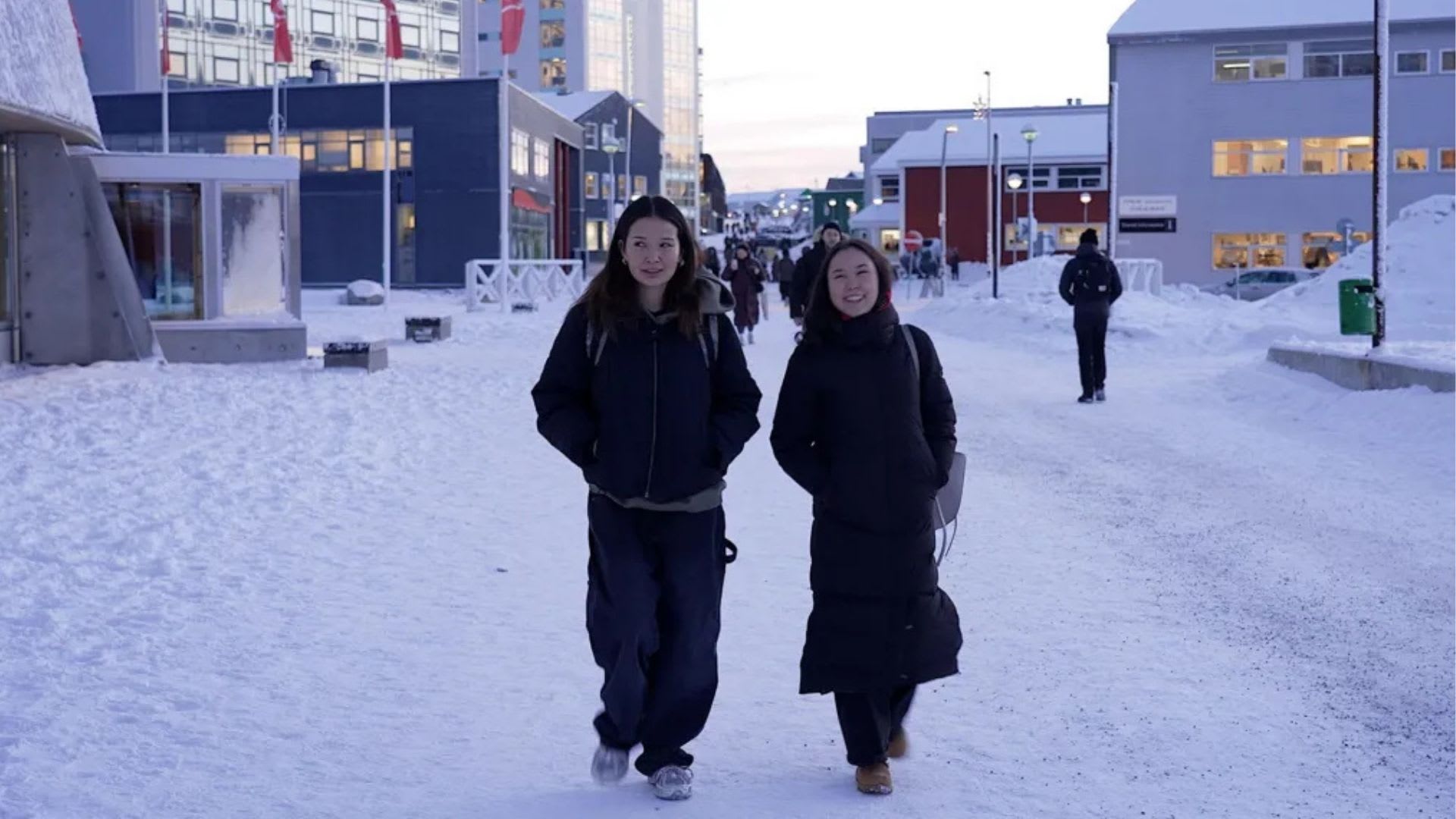 格陵兰民众在首都努克行走。(图:英国广播公司)
