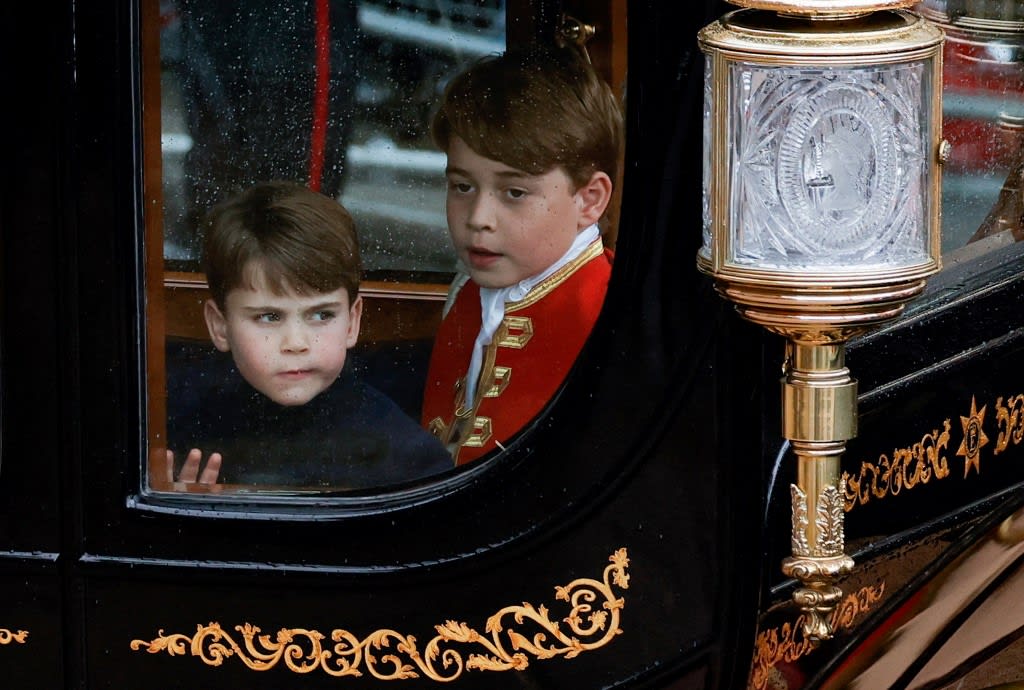 加冕典礼结束后,路易王子与家人乘坐马车从威斯敏斯特教堂回到了白金汉宫。