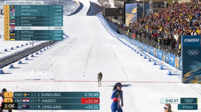 英国《卫报》报道,意大利米兰科尔蒂纳举办的冬奥会在今天(19日)的女子越野滑雪团体短距离资格赛中,一只名为纳兹古尔(Nazgul)的捷克狼犬冲进滑雪赛道。